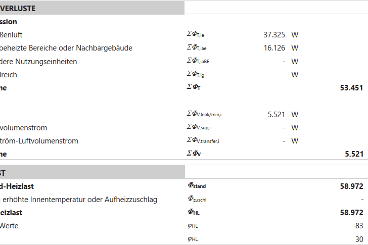 Eine raumweise Heizlastberechnung ist nicht nur förderrelevant, sie gibt auch Aufschluss über die erforderliche Wärmeleistung eines jeweiligen Raumes. Sie berücksichtigt neben der energetischen Qualität der Außenhülle auch die Raumzieltemperatur. Zudem dient diese Berechnung als wertvolle Grundlage zur Auswahl eines neuen Wärmeerzeugers.